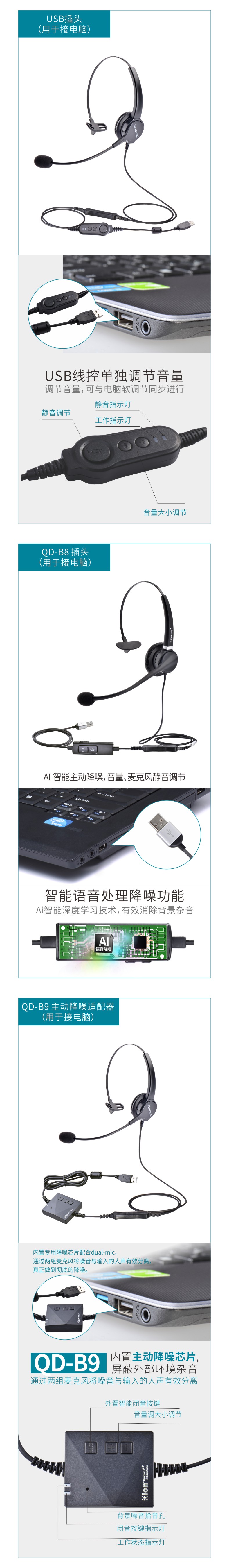 可选配快速连接线(QD),以保护电话机或电脑的接口。
